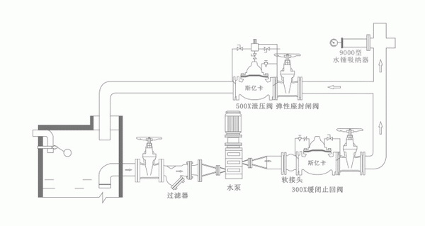 水锤吸纳器应尽量安装在水击源附近,其安装应便于水击波无阻碍地通向消除。